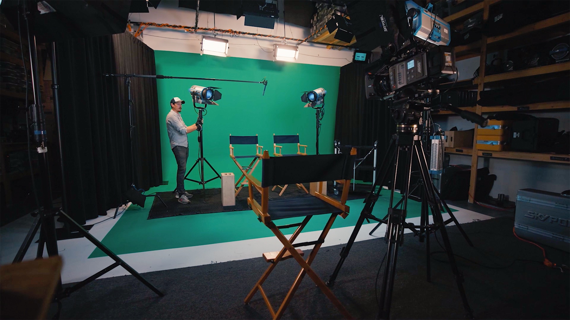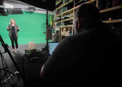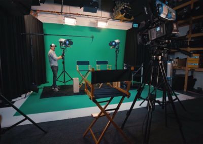 Our main studio is 900 sq. ft. and features a cyc wall that can be painted white or green depending on the needs of the shoot.